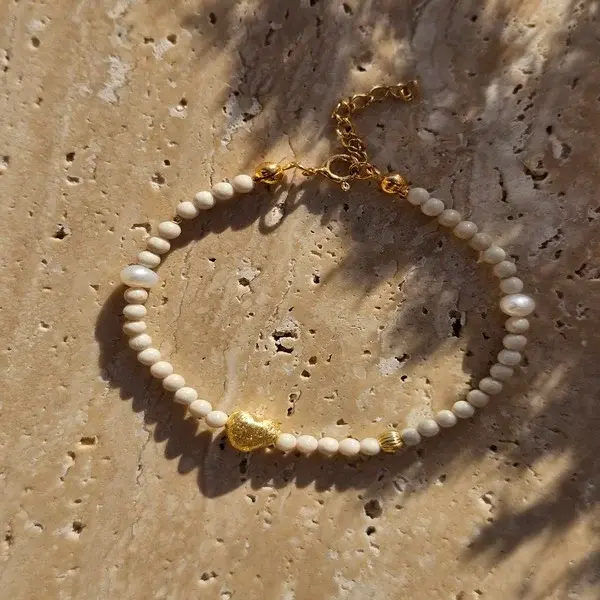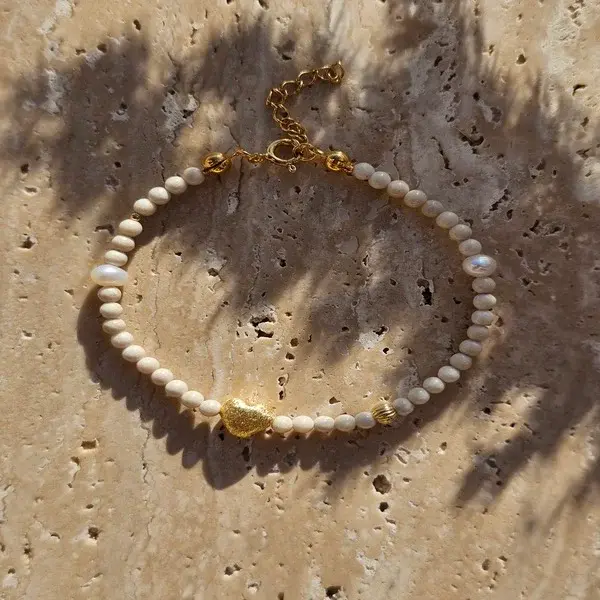 Bransoletka z kamienia rzecznego, pereł i serduszka