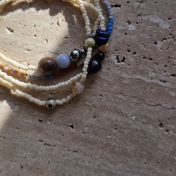 Bransoletka z koralików w kolorze beżowym z dodatkiem kamieni naturalnych