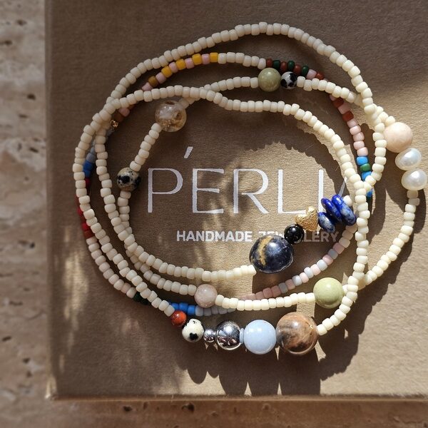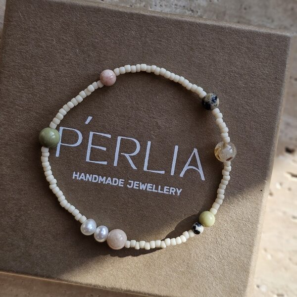 Bransoletka z koralików w kolorze beżowym z dodatkiem kamieni naturalnych