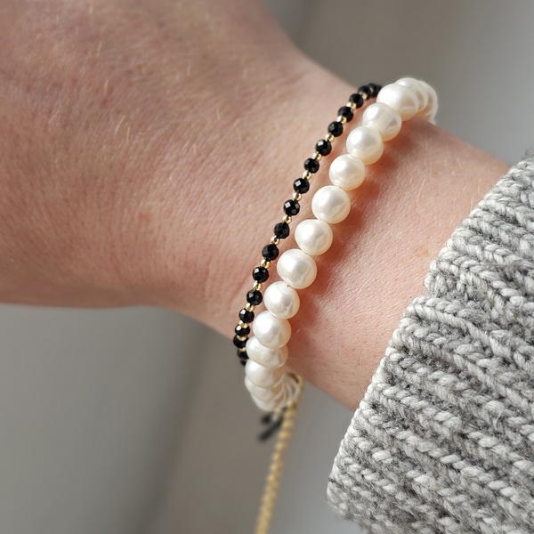 Bransoletka posiada makramowe zapięcie, dzięki któremu można regulować jej rozmiar. Minimalny obwód to około 16 cm, a maksymalny około 22 cm.