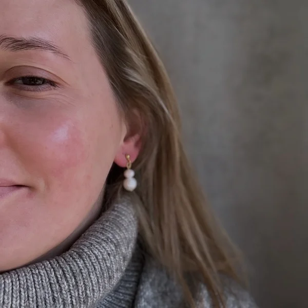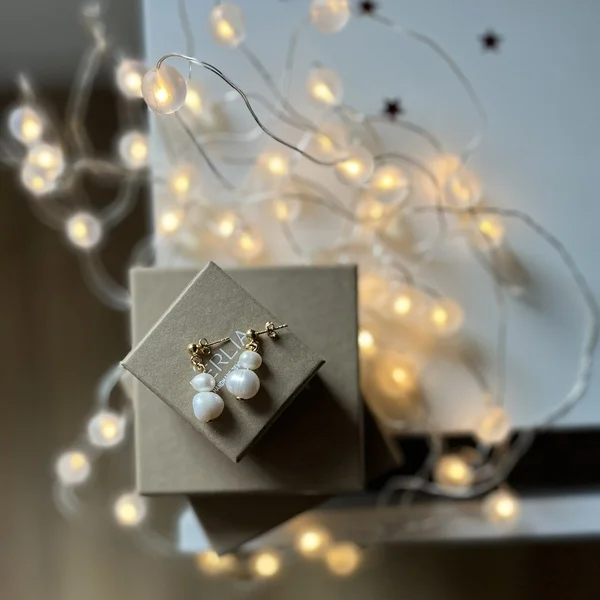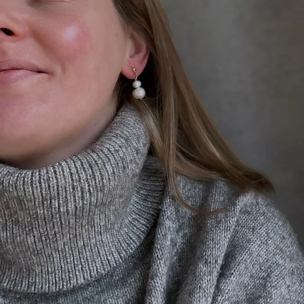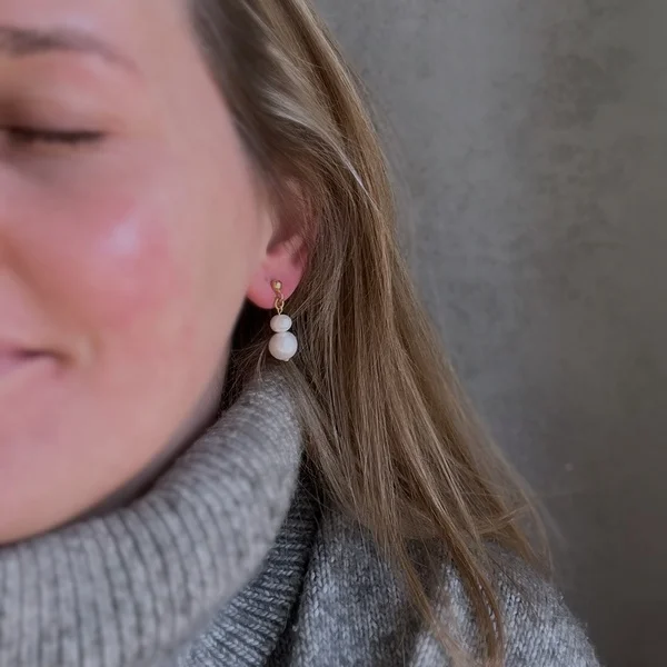Srebrne kolczyki z dodatkiem perełek – jednej dużej (ok 10 mm) i malutkiej (ok 4-5 mm).