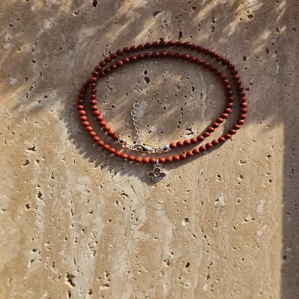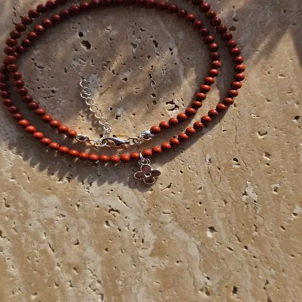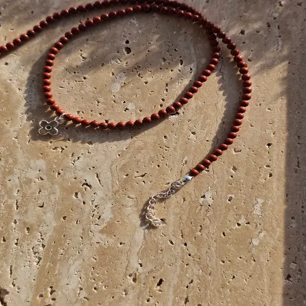 Naszyjnik z kamienia jaspis i zawieszki w kształcie kwiatka