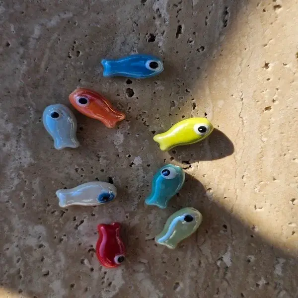(Czas wysyłki: 5 dni)Naszyjnik wykonany z kamienia koral w pięknym różowym kolorze z dodatkiem ceramicznej rybki. Rybkę możesz wybrać w innym kolorze, jak Ci się nie podoba fioletowa. Napisz w uwagach przy finalizacji zamówienia jaki kolor rybki wybierasz (wszystkie kolory rybek są pokazane na zdjęciu), aby mogłam wykonać dla Ciebie naszyjnik. Zapięcie naszyjnika jest wykonane ze srebra pozłacanego. Całkowita długość naszyjnika 38 cm + 3 cm przedłużenia. Piękny i subtelny! Minimalistyczny, a zarazem wyrazisty!